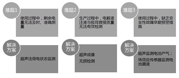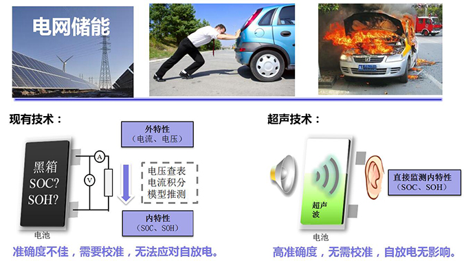 針對鋰離子動力與儲能電池實際使用與生產(chǎn)中的所面臨的技術(shù)難題,采用超聲、半導(dǎo)體傳感等特色技術(shù),以極低的成本,大幅提高電池的生產(chǎn)質(zhì)量、使用效率與安全性。