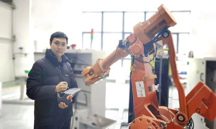 楊澤源提出了加工質(zhì)量與誤差動(dòng)態(tài)作用下的機(jī)器人末端加工精度主動(dòng)調(diào)控與保障方法,實(shí)現(xiàn)了大型曲面構(gòu)件機(jī)器人磨拋誤差動(dòng)態(tài)補(bǔ)償與質(zhì)量提升,應(yīng)用于高鐵白車身、大型風(fēng)電葉片等制造過(guò)程,有效降低了機(jī)器人作業(yè)誤差,并將數(shù)天的調(diào)試時(shí)間,縮短到了十幾分鐘。