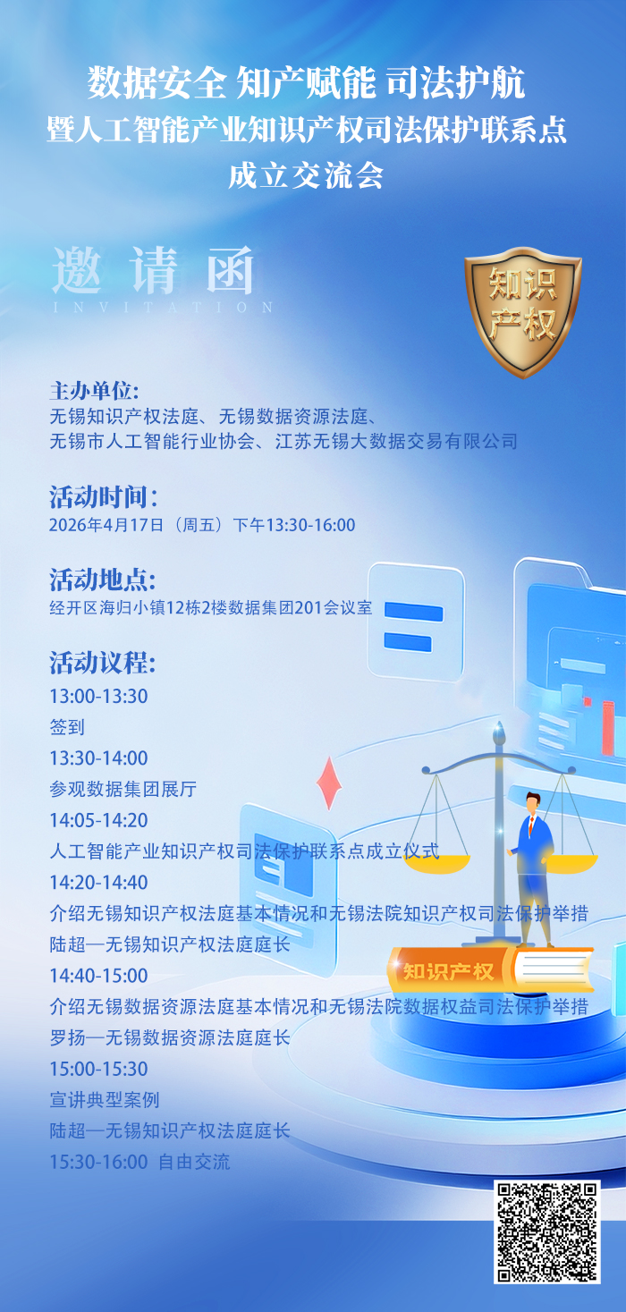 數(shù)據(jù)安全 知產(chǎn)賦能 司法護(hù)航暨人工智能產(chǎn)業(yè)知識(shí)產(chǎn)權(quán)司法保護(hù)聯(lián)系點(diǎn)成立交流會(huì)邀請(qǐng)函